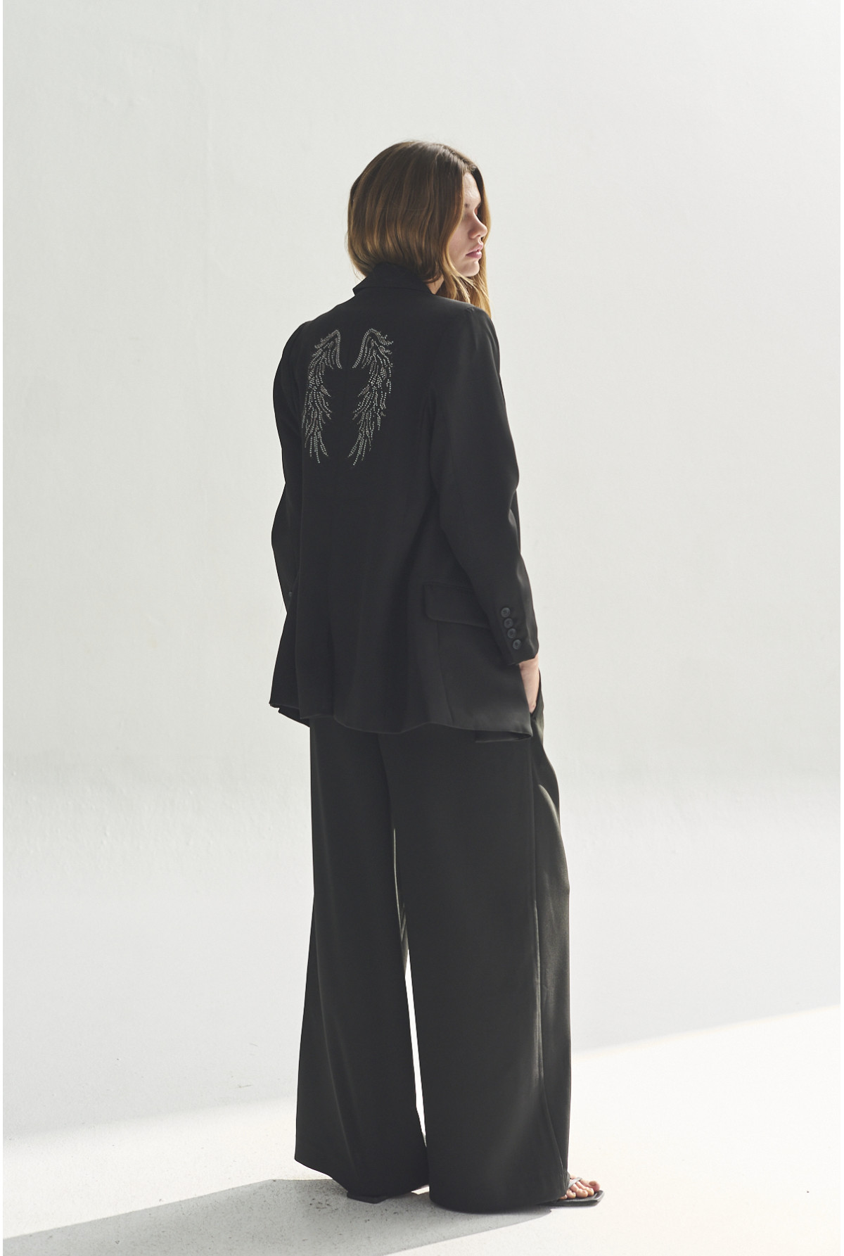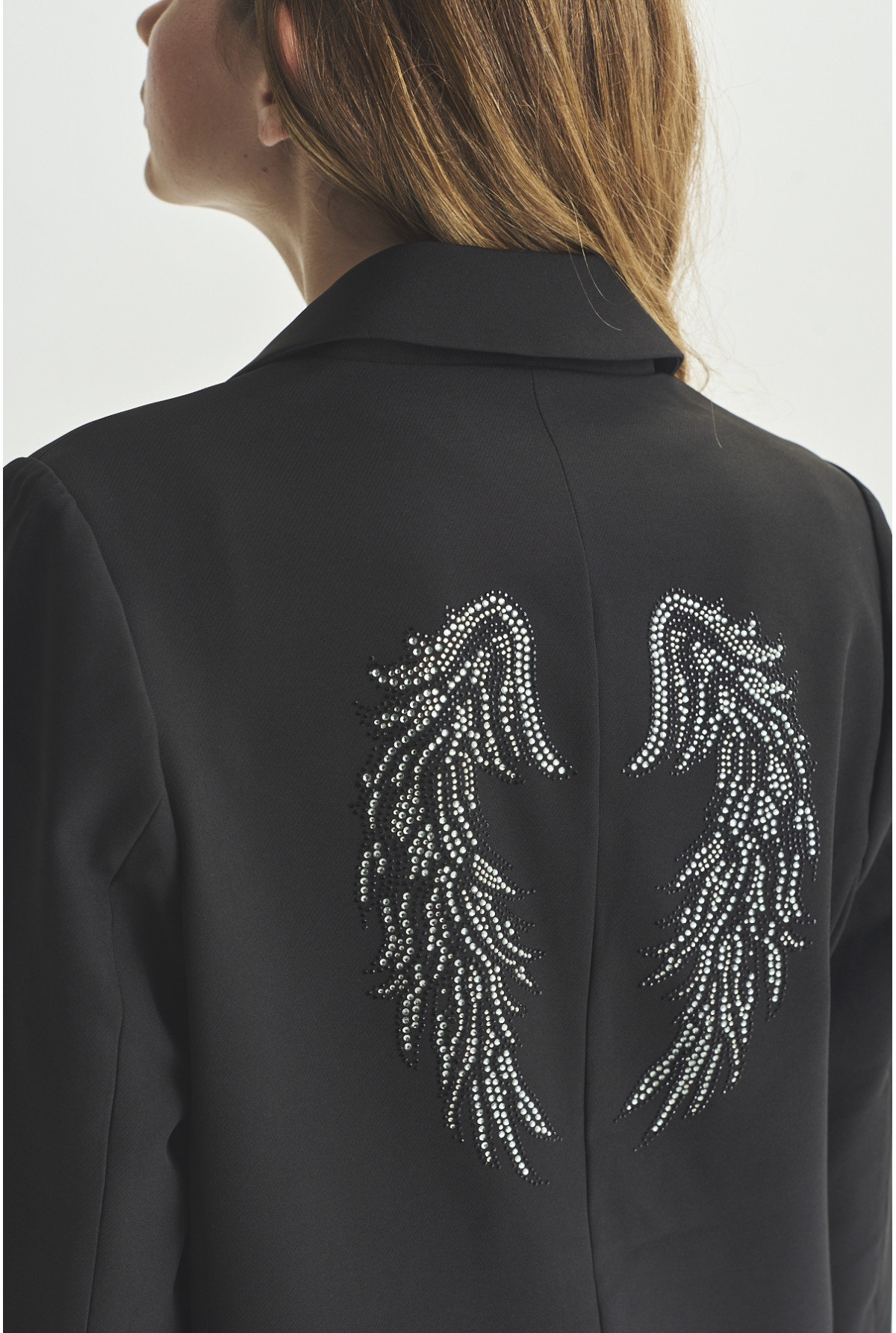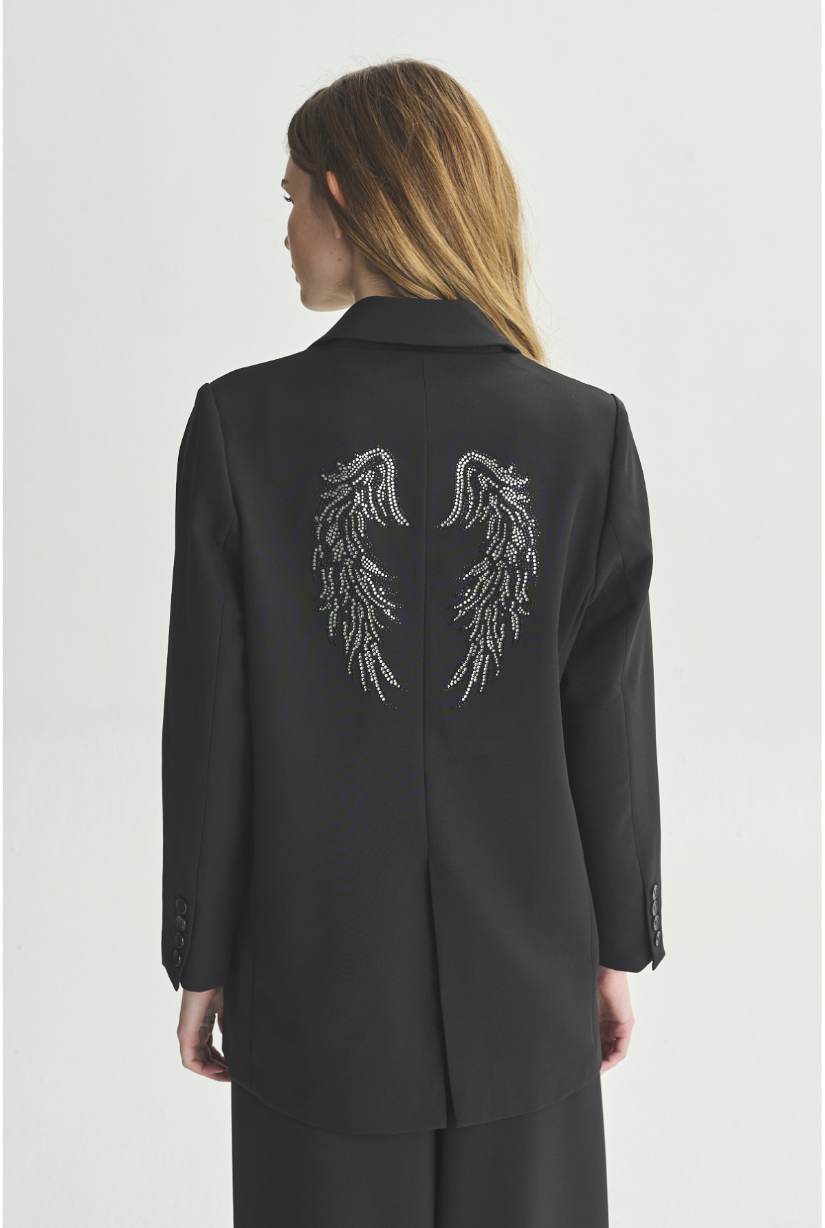 Blazer cruzado.Con hombreras.Forrado.Con detalle de dibujo de strass en espalda.