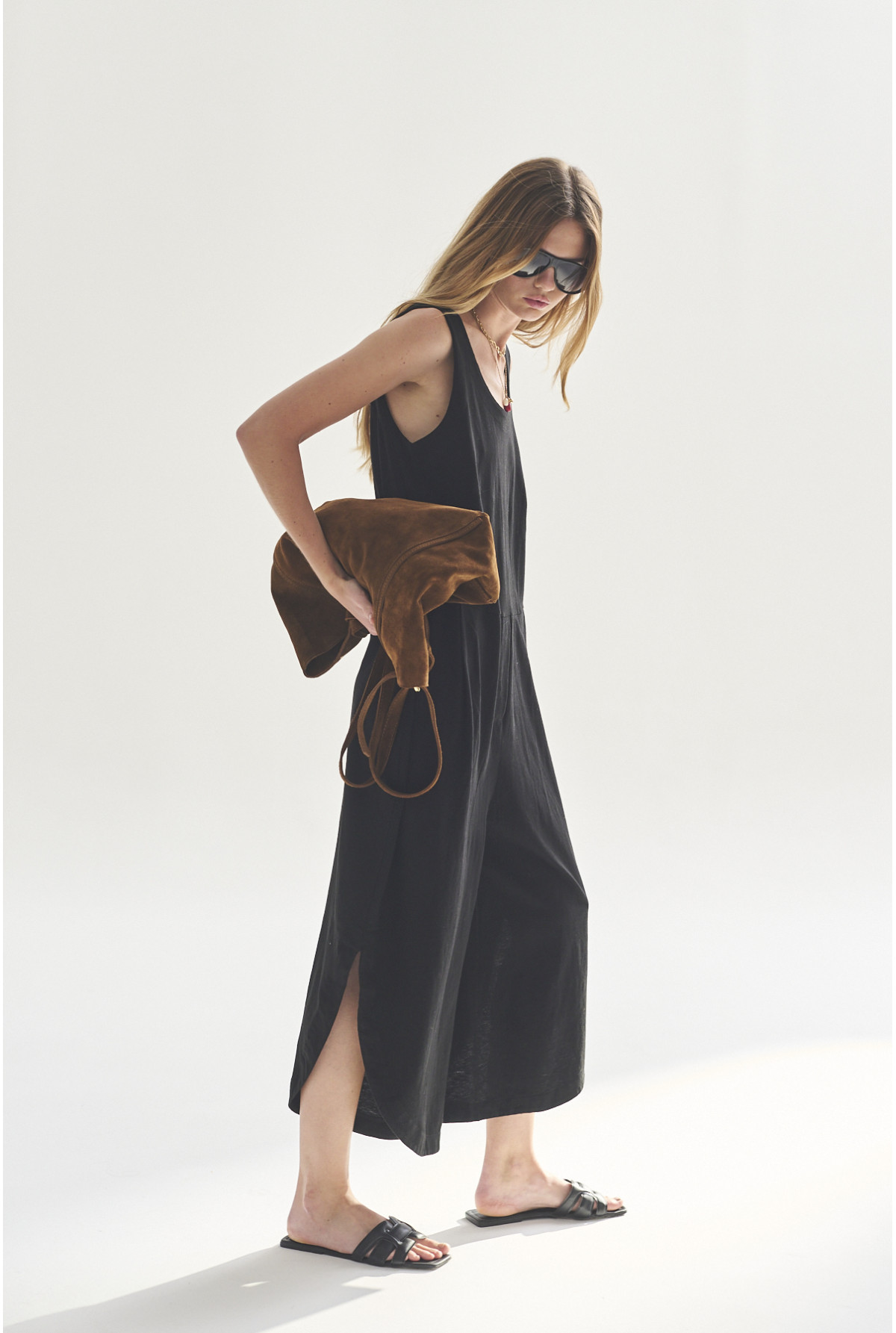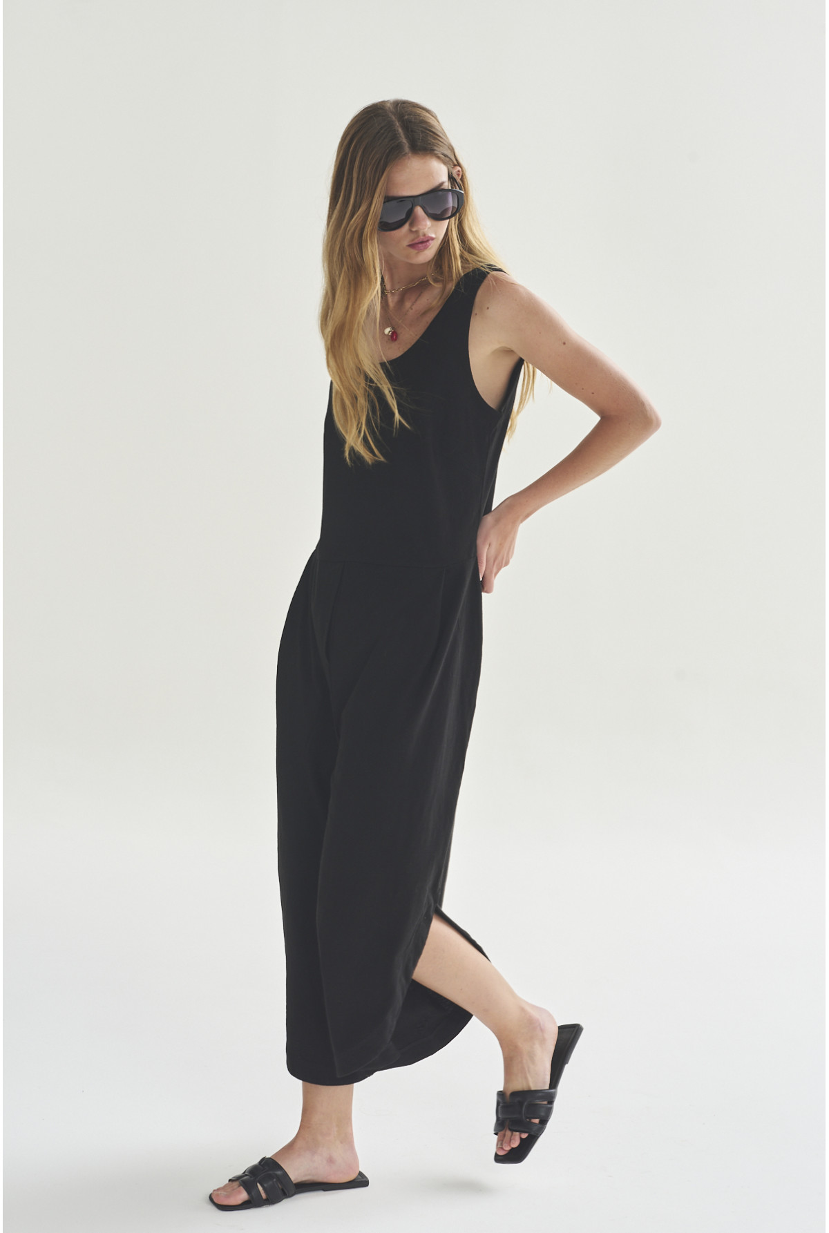 Mono confeccionado en Algodón y Lino Peruano. Largo con pantalón ancho. Calce ancho.