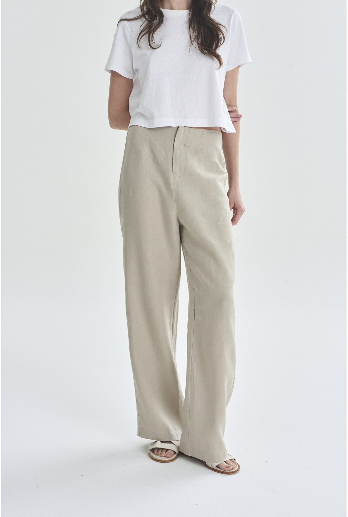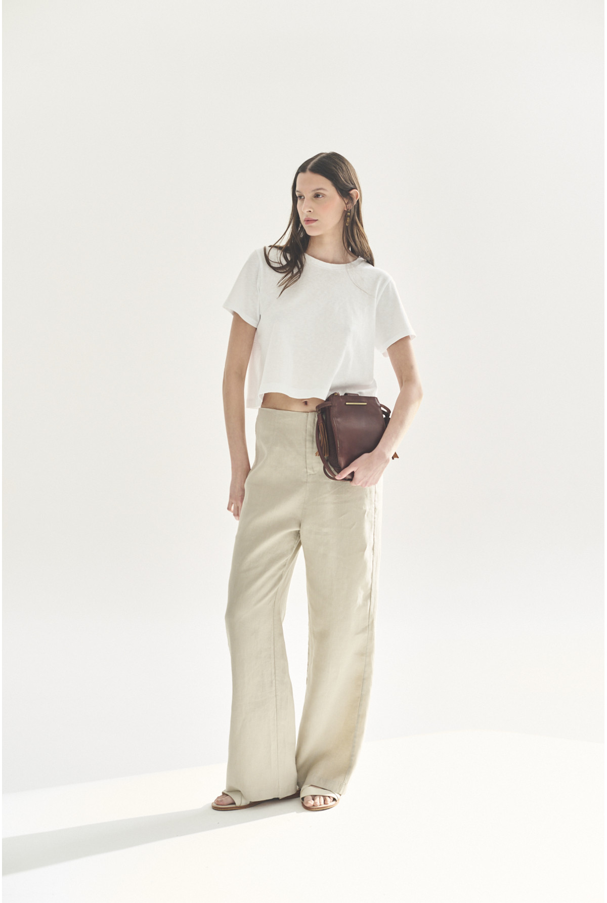 Pantalon 100% lino,pierna recta, cierre en delantero.