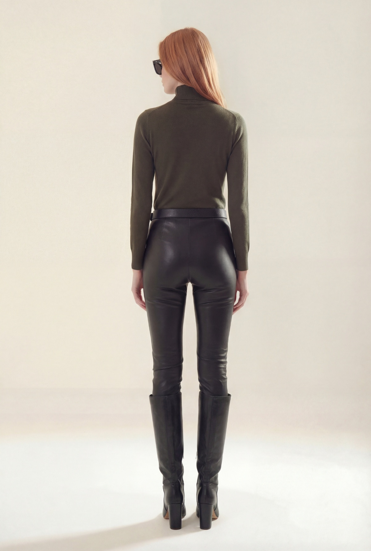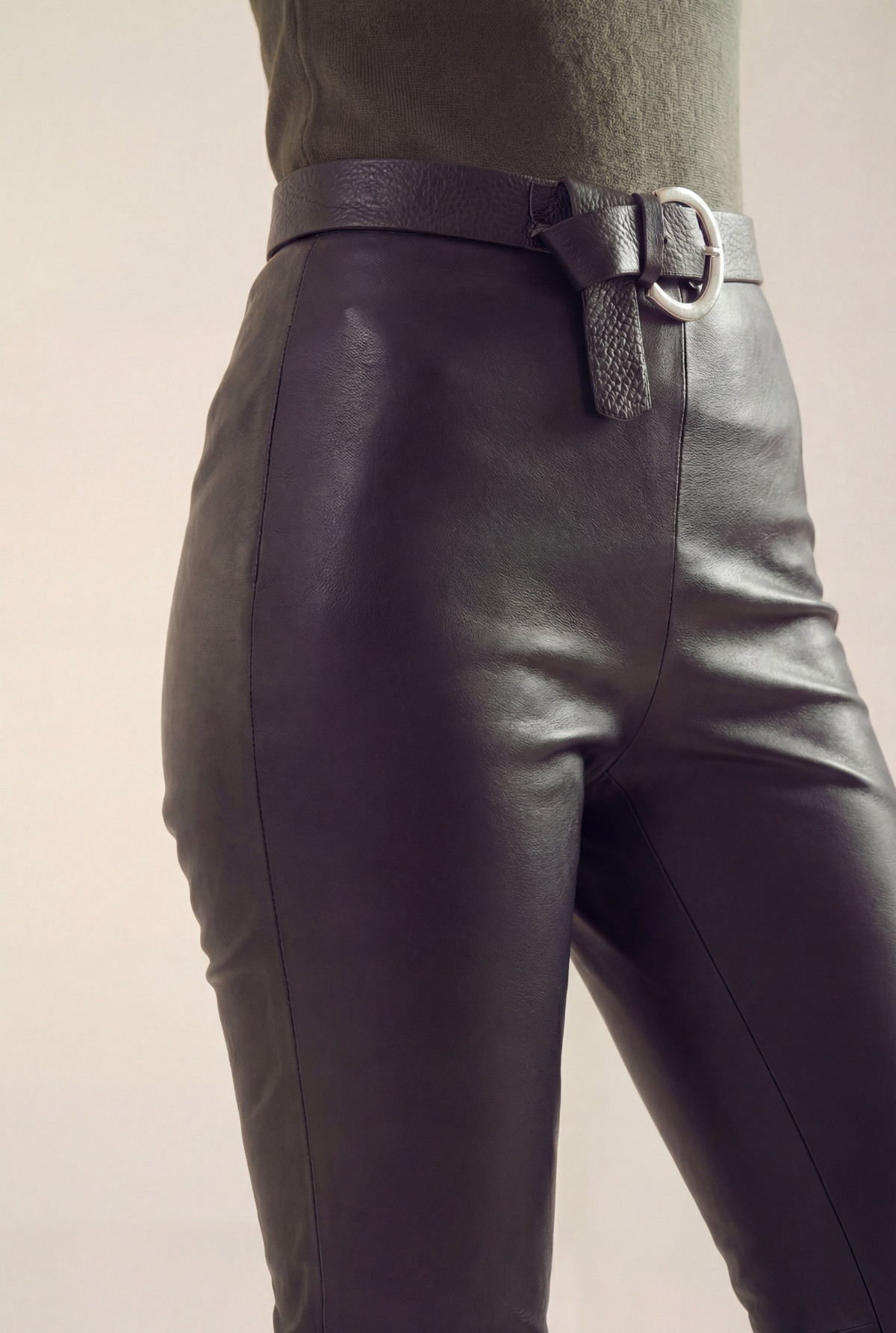 Calza de cuero sintetico sin cierre, con forreria en cintura interna.