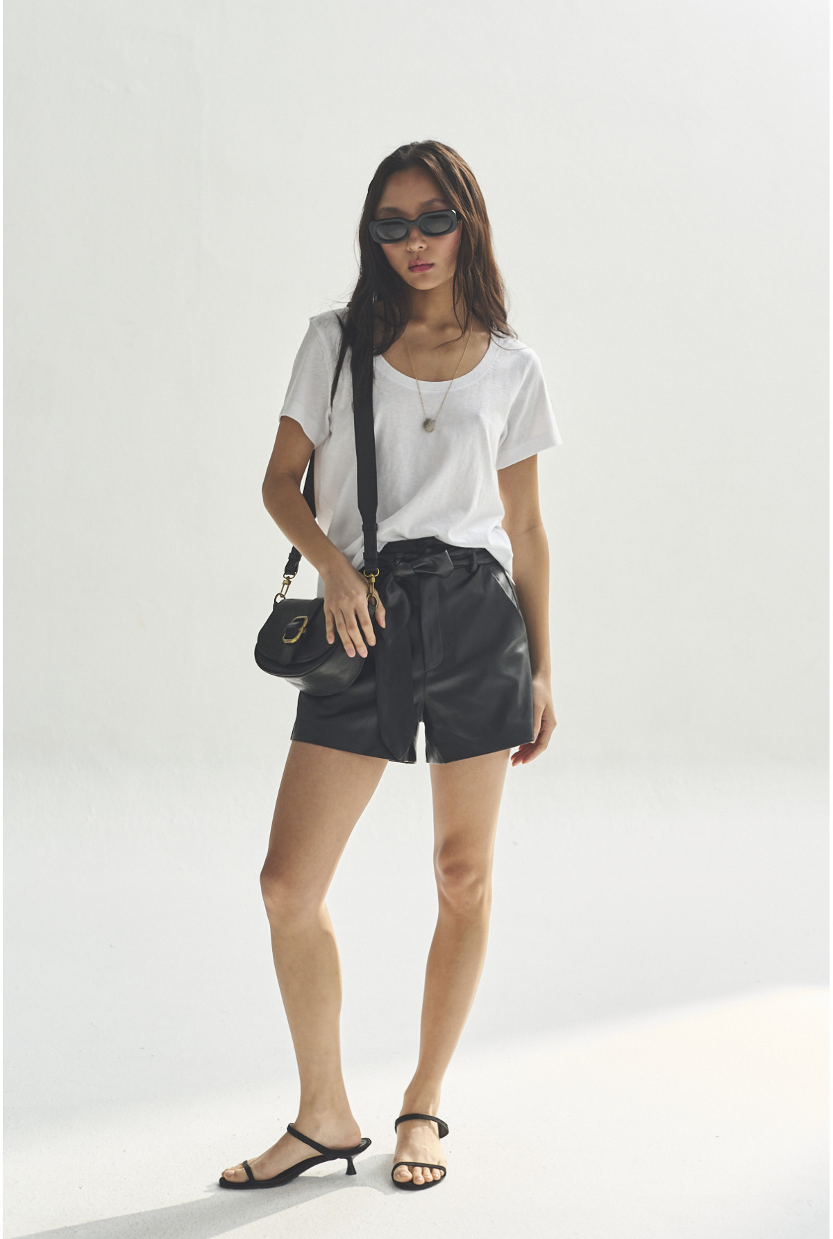 Remera confeccionada en Algodón y Lino Peruano. Escote U y mangas cortas. Calce Recto.