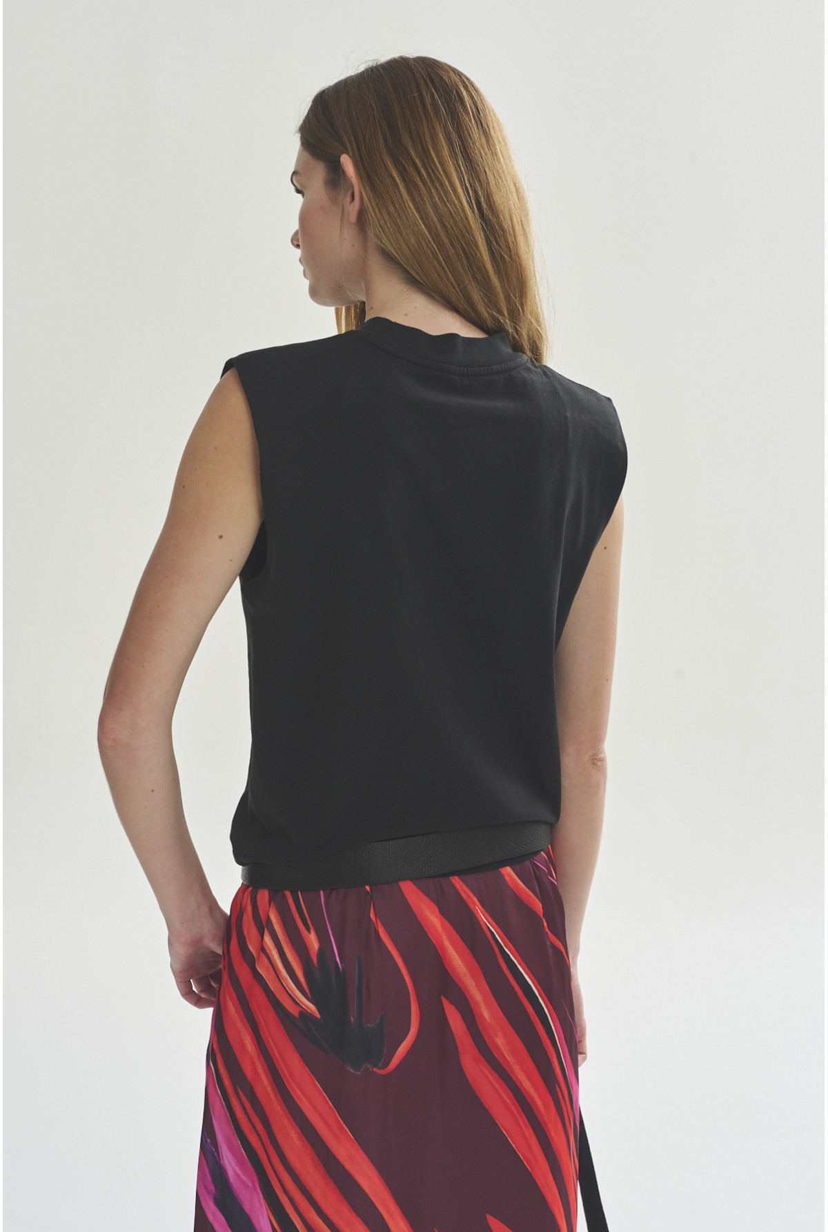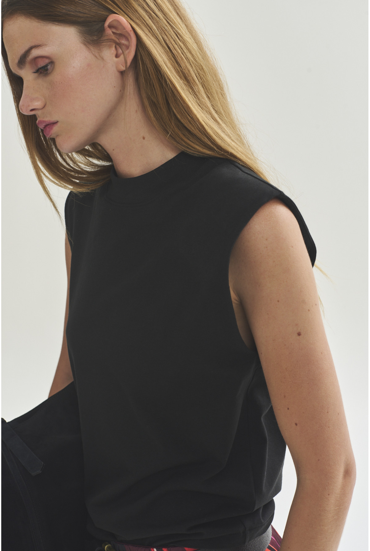 Americana confeccionada 100% en Algodón Peruano. Escote redondo. Lleva hombreras. Calce recto.