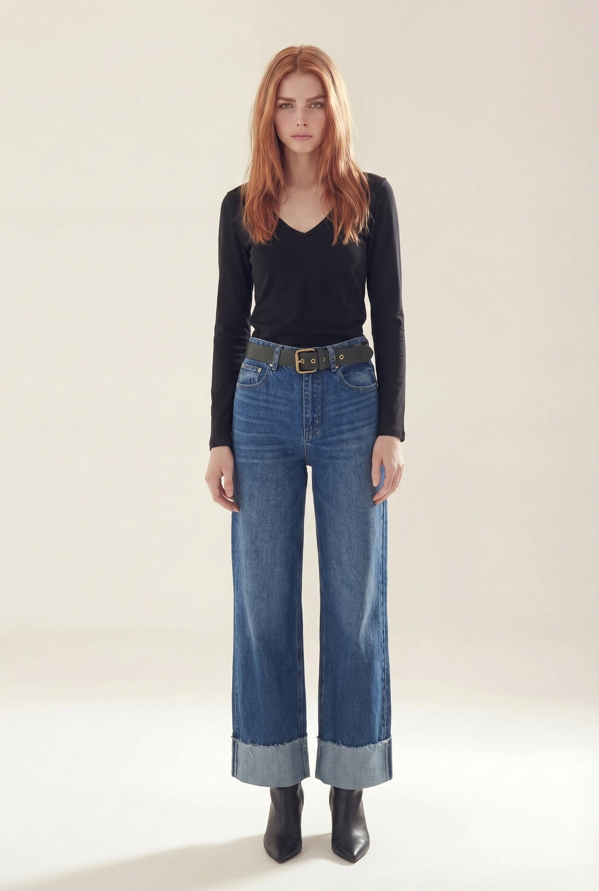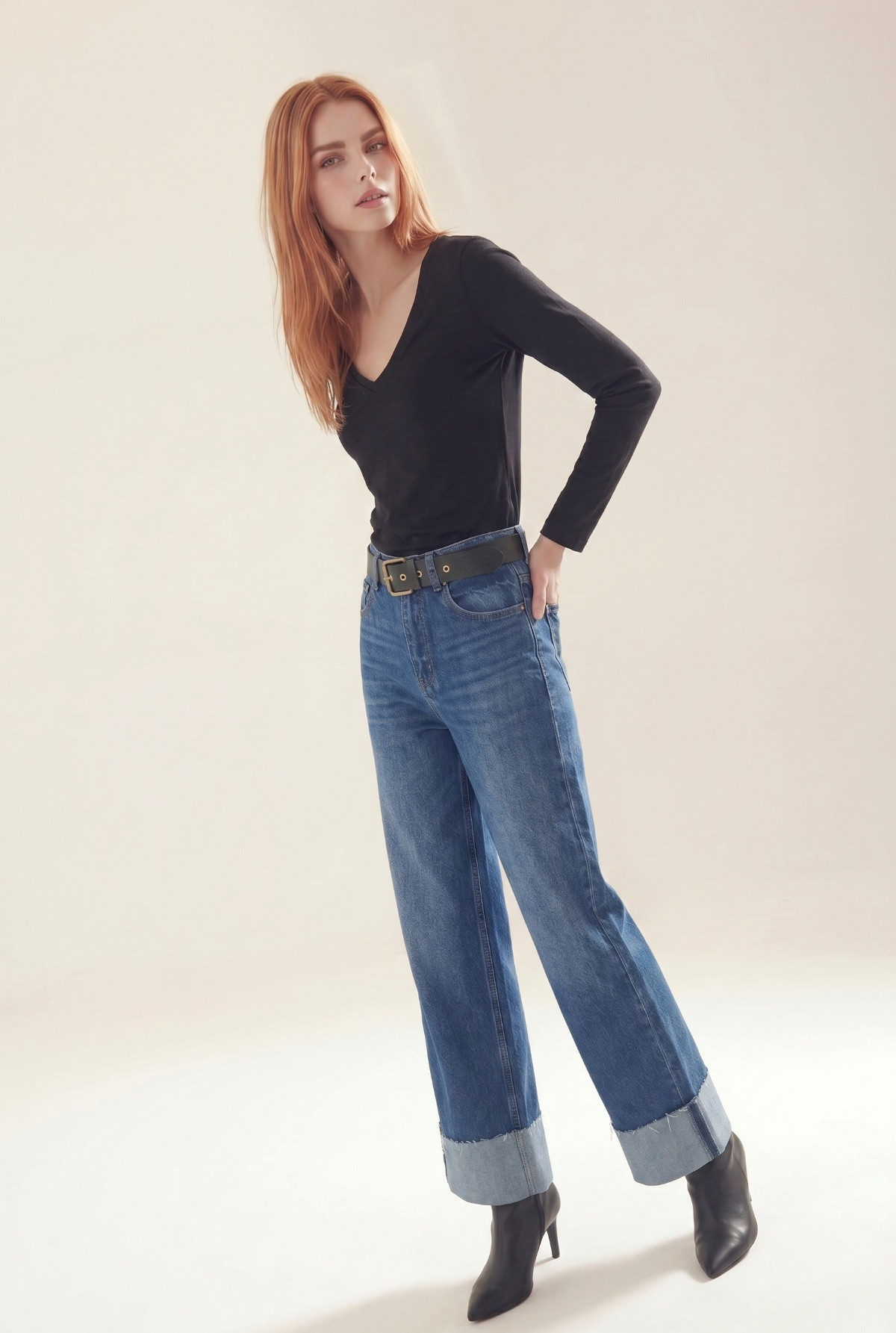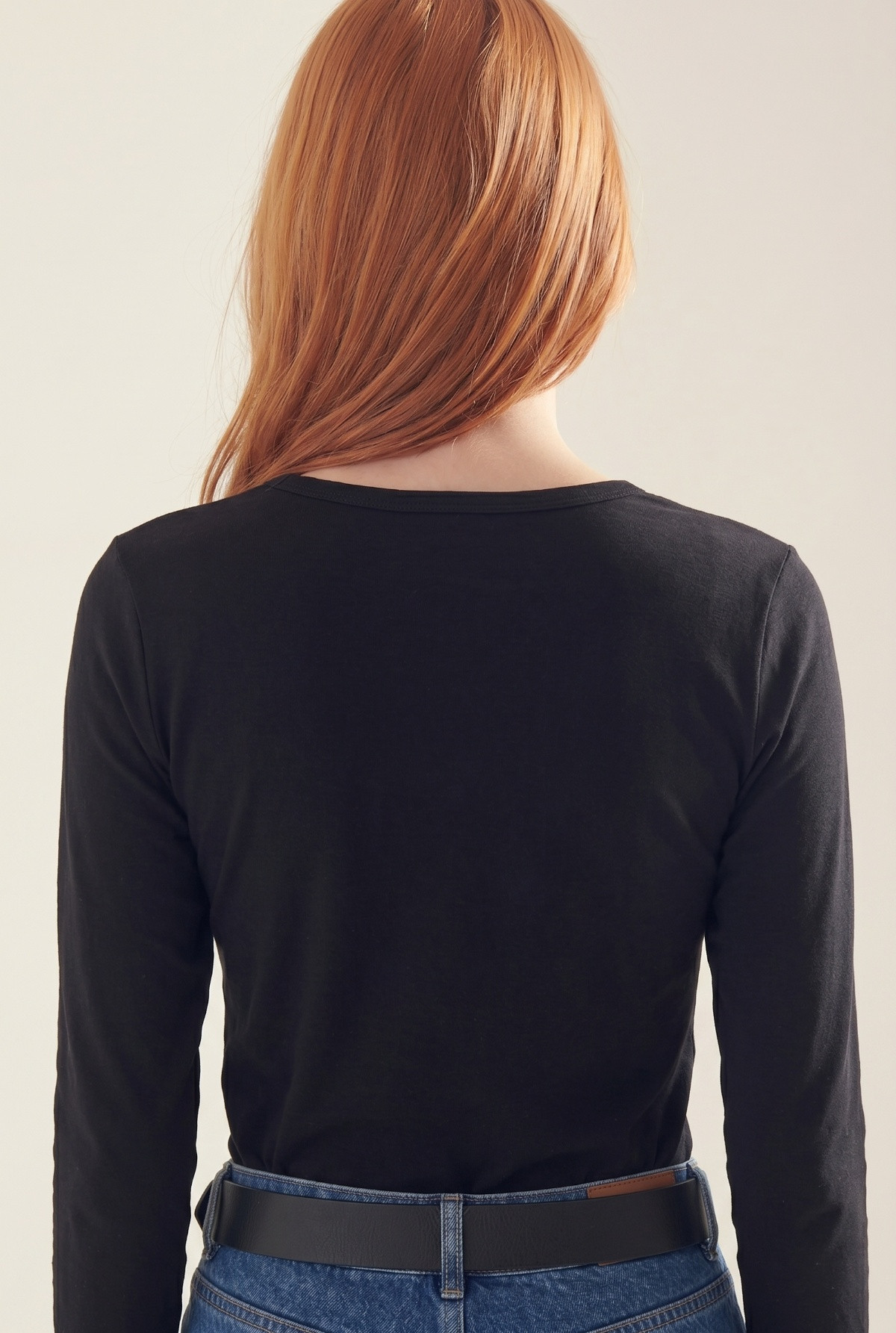 Remera con escote en V y mangas largas. Calce Fit