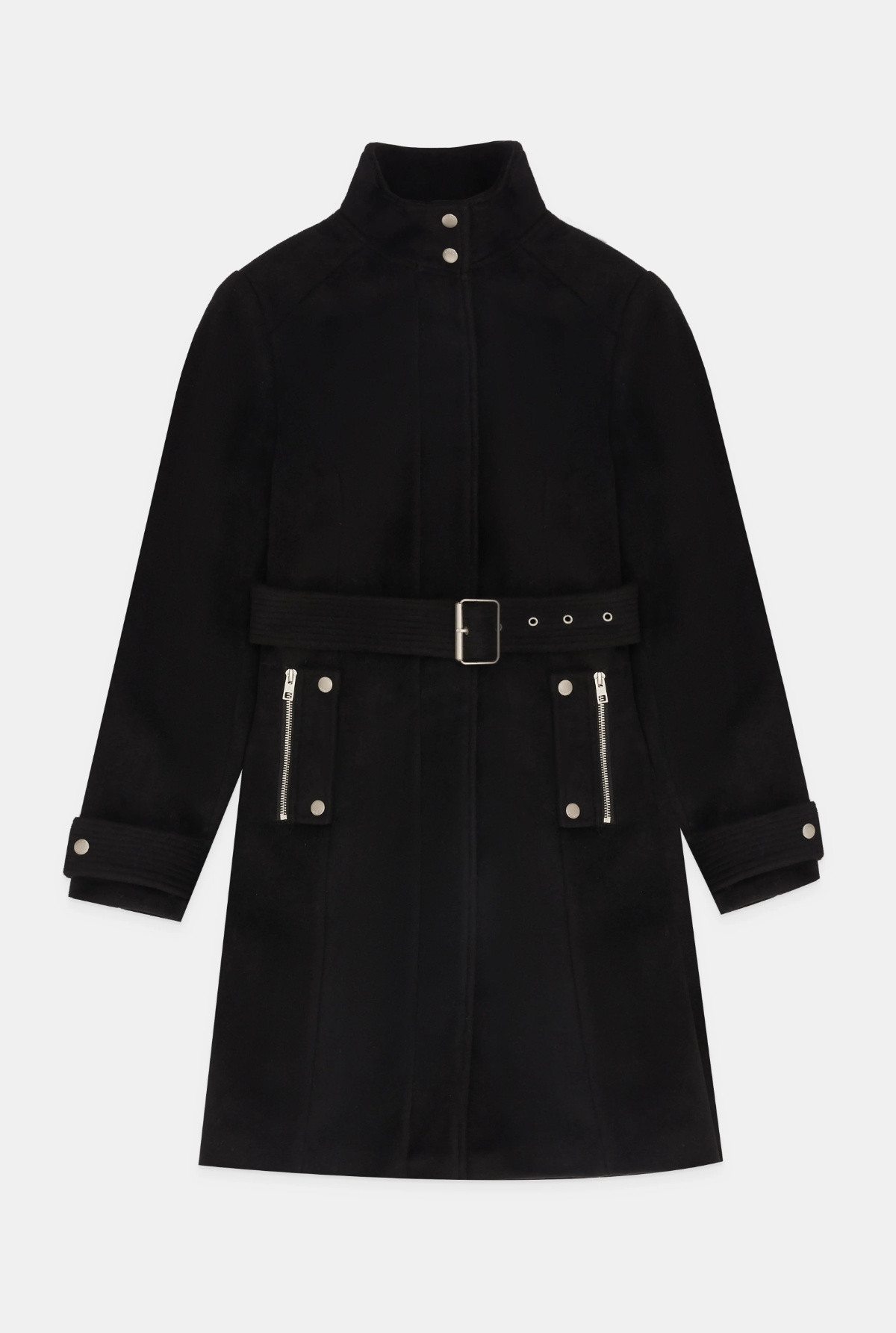 Tapado de paño con lana. forrado, con botones snap metálicos, cierre metálico, lazo desmontable con hebilla metalica y hombreras