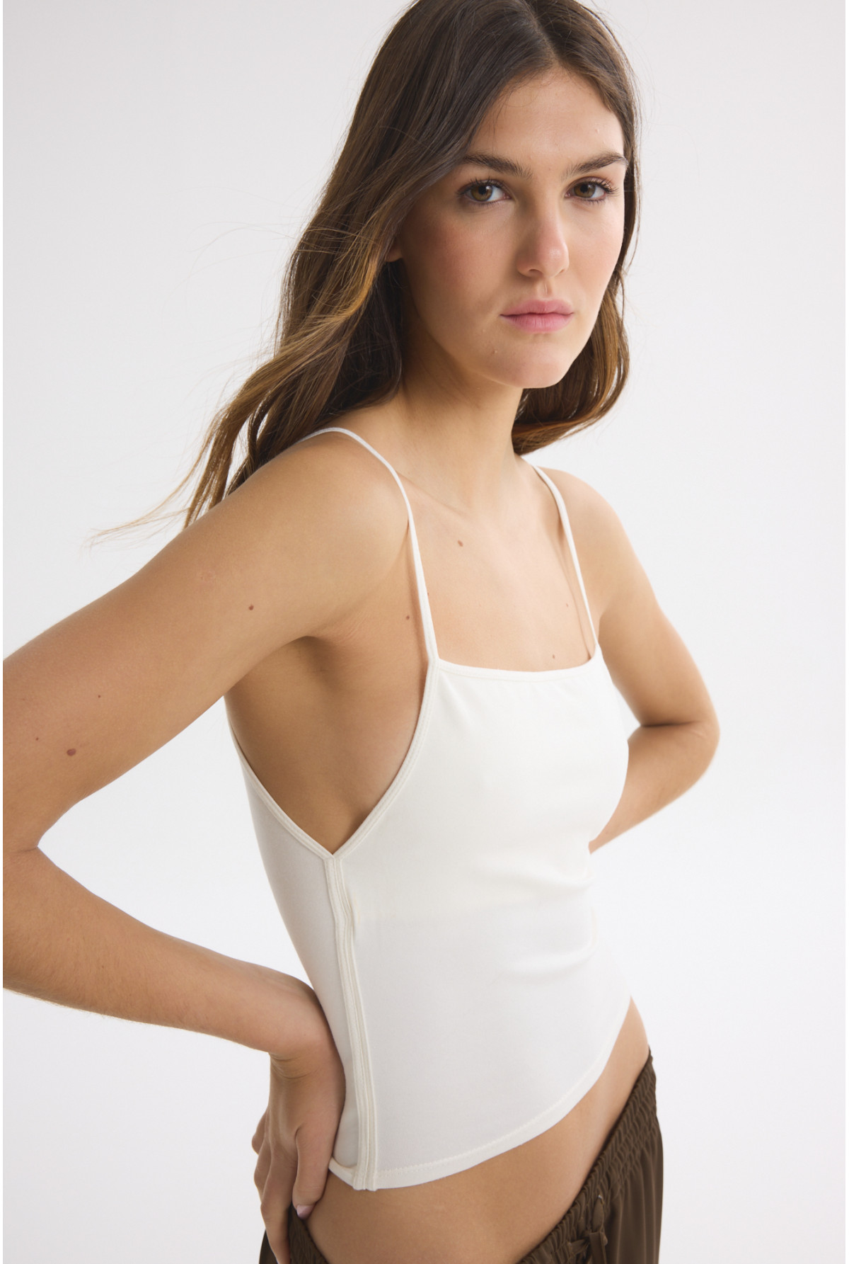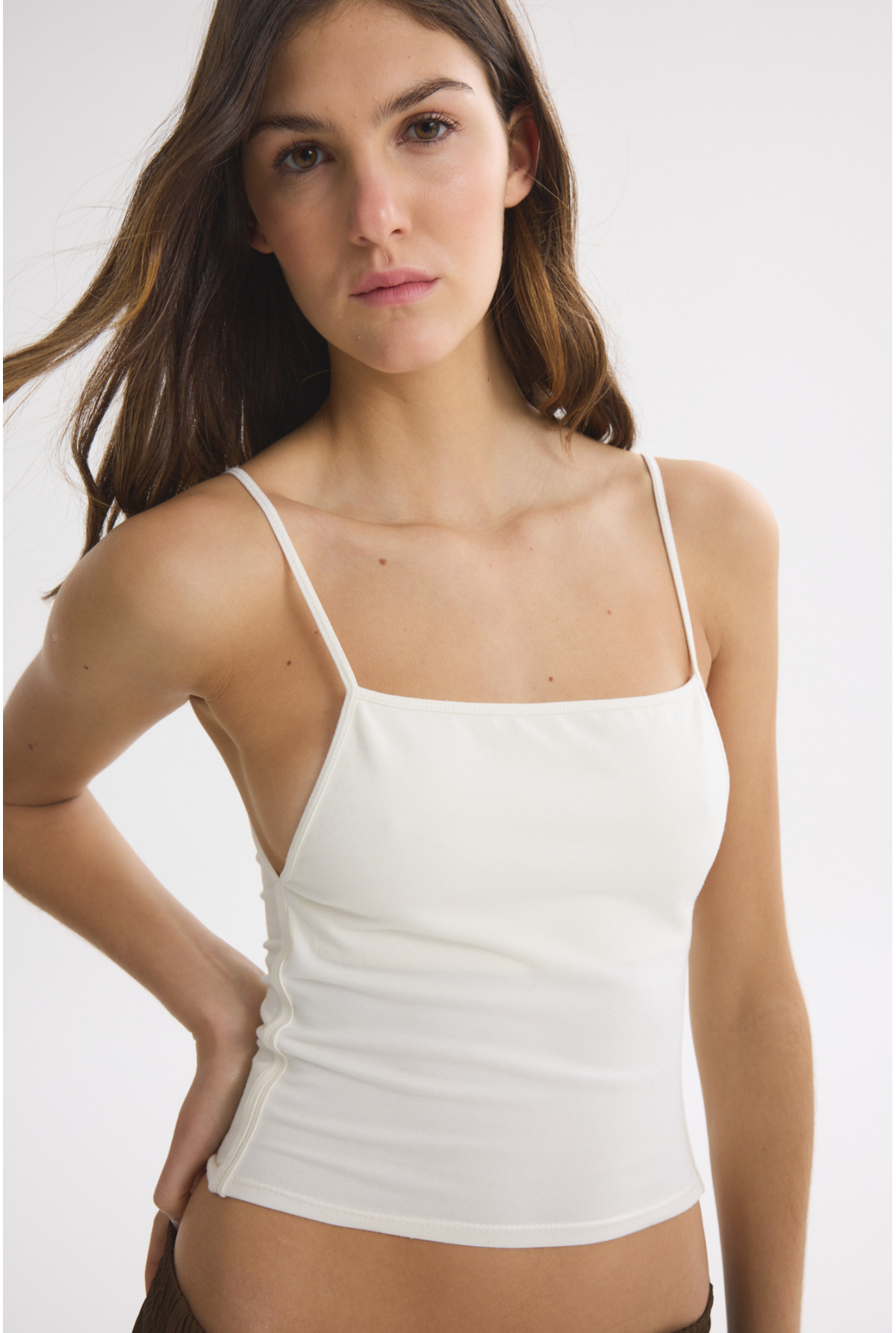 Musculosa bretel redonde con corpiño interno. Confeccionada en tela de algodón con elastano.Calce fit.