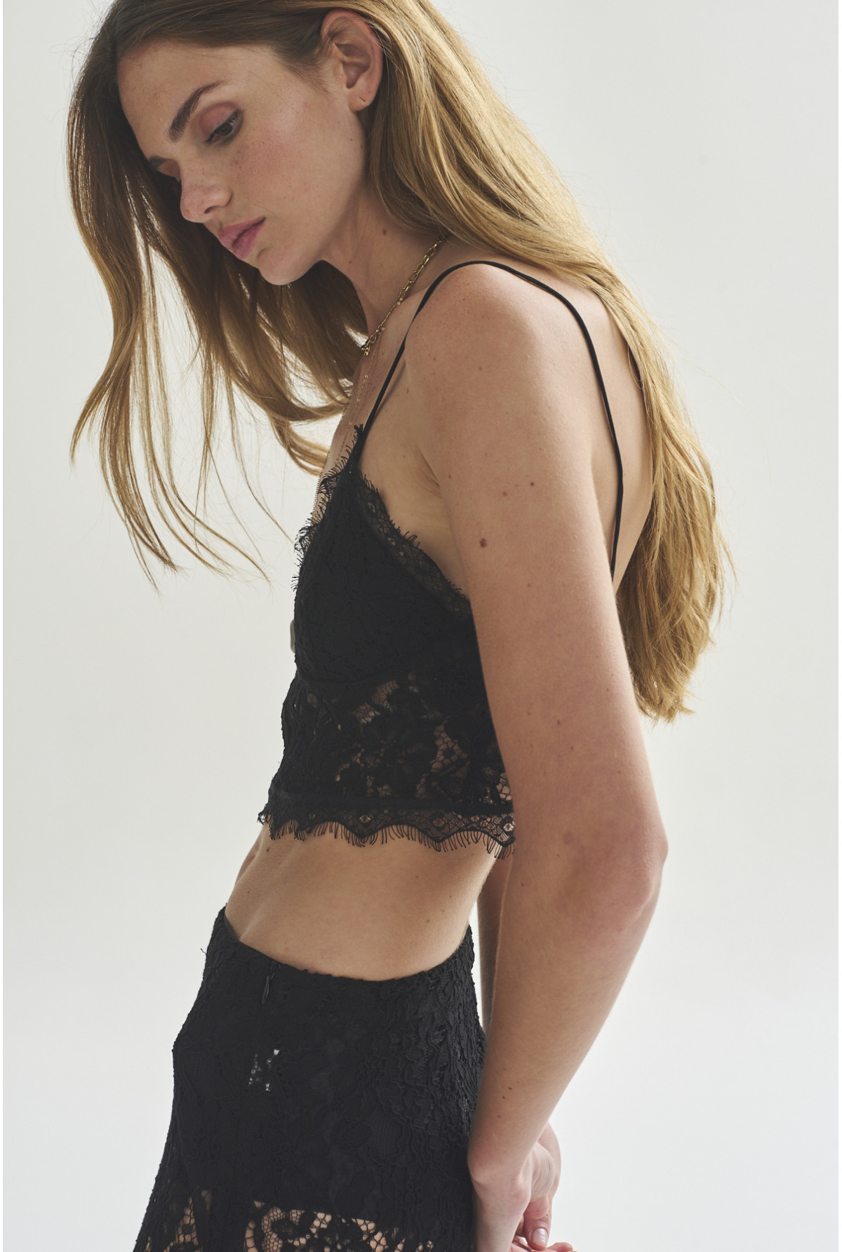Top de encaje con bretel de tela combinacion al tono.Cierre invisible en lateral.