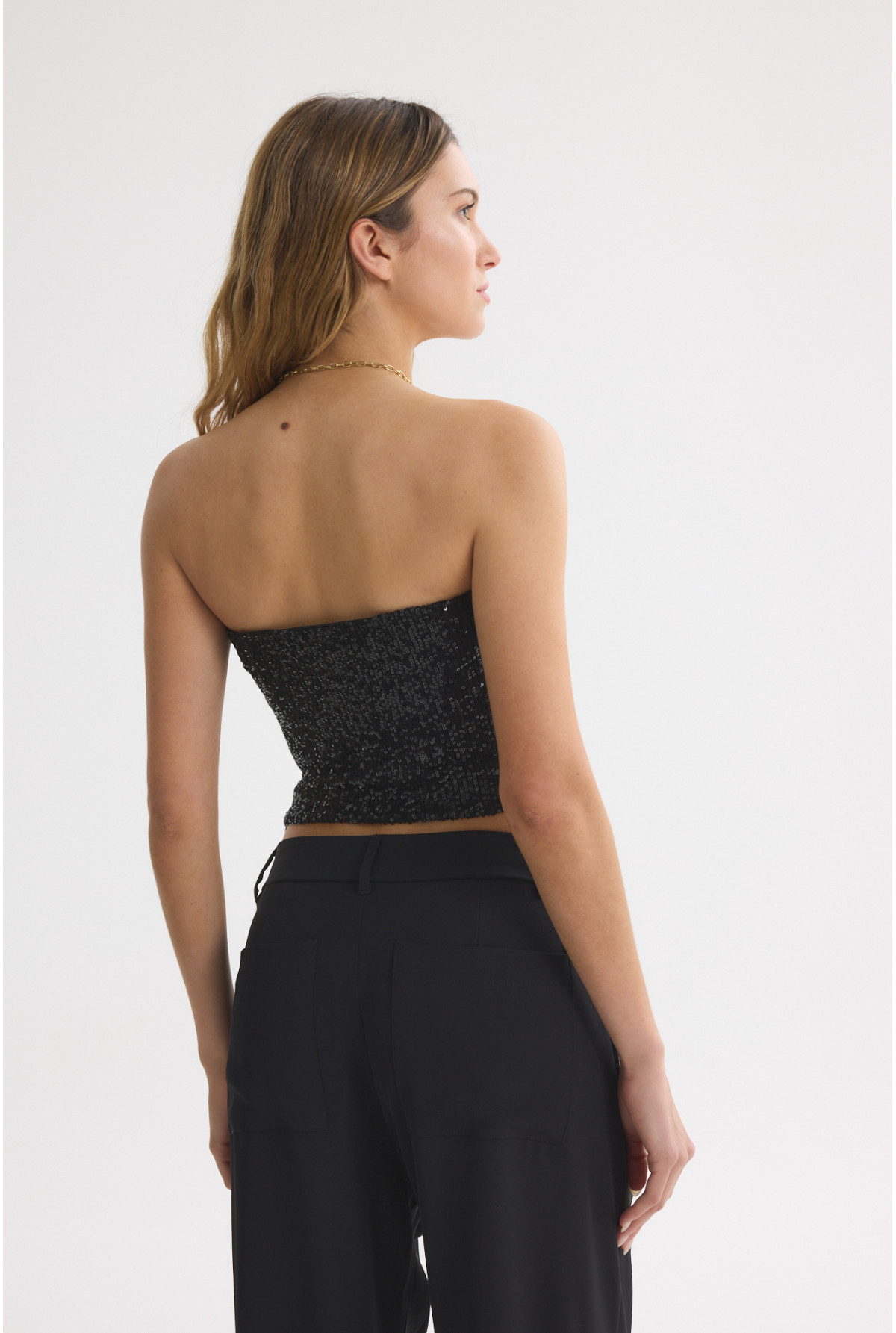 Top corto sin breteles. Tela de lentejuelas.Con cierre invisible en lateral y forreria al tono.