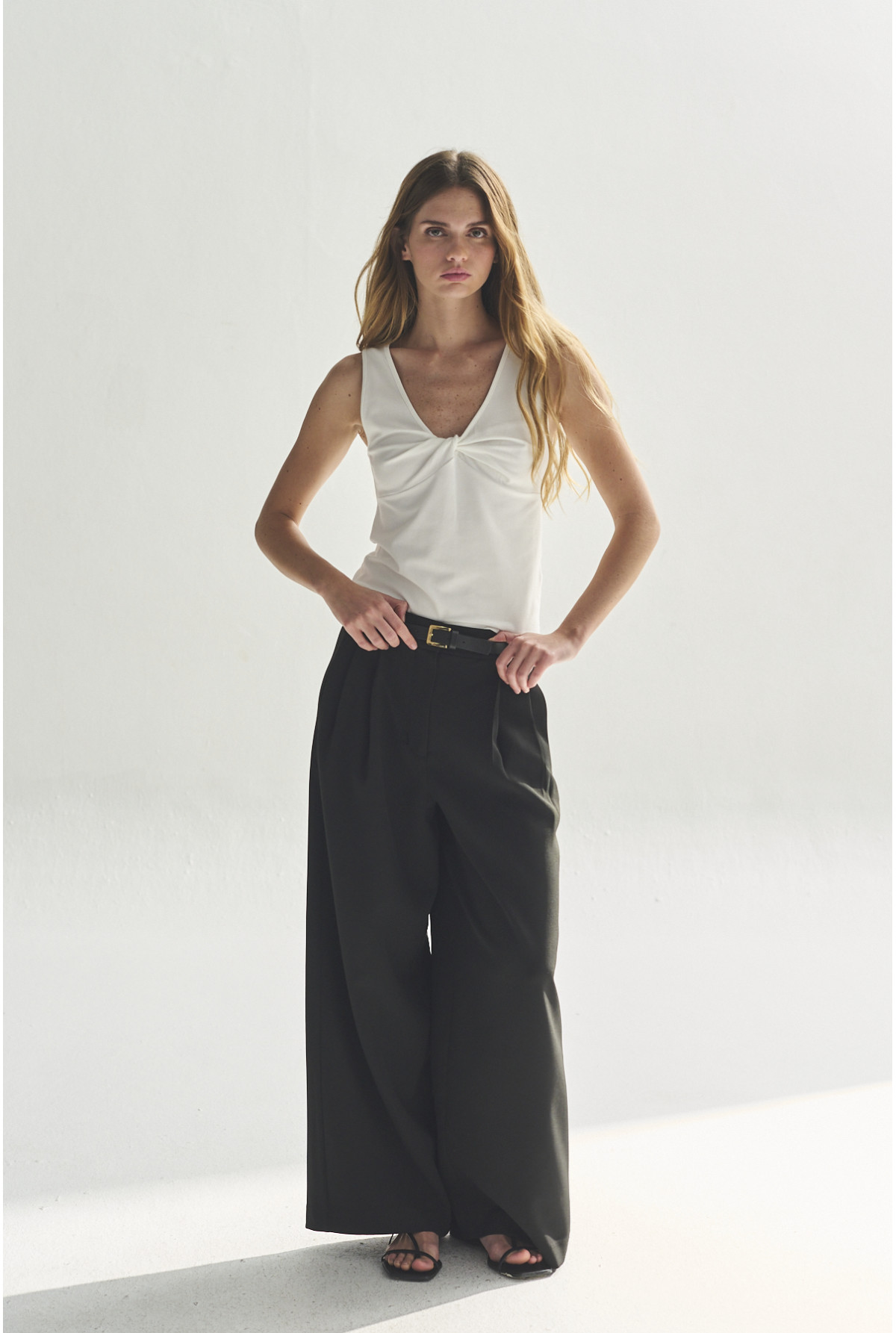 Musculosa americana con escote en V y detalle de torzada en corpiño. Calce Fit